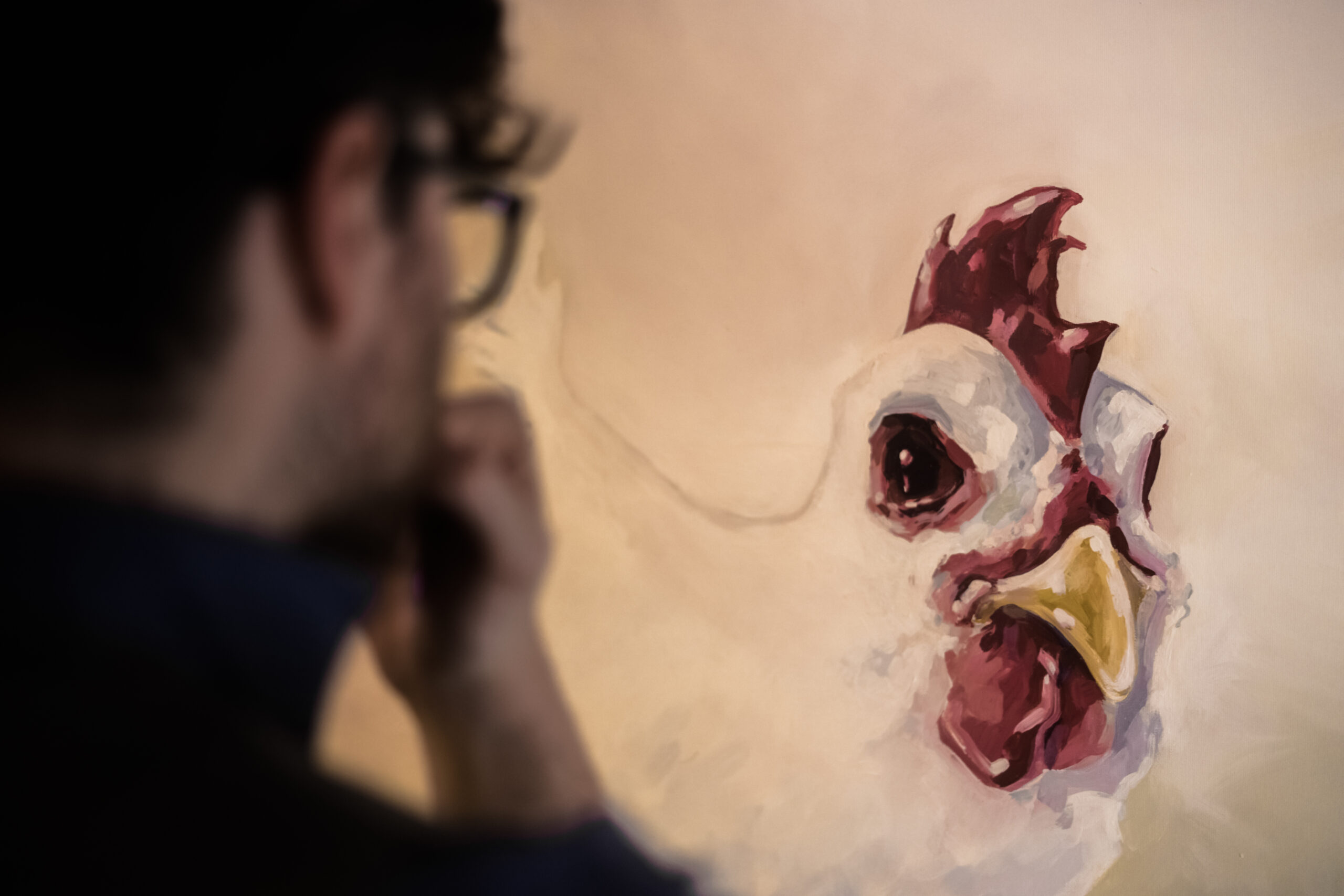 Dai polli, la foga di riprodurre e rappresentare è cresciuta inarrestabile, in modo spesso irrazionale e tumultuoso. Solo dopo molti anni ho cominciato a dare un ordine e una direzione al mio lavoro. Per questo è nata la mia prima vera mostra, oltre all’indispensabile intuizione e capacità organizzativa di Nicoletta Candiani, titolare e curatrice di SAC, da qualche tempo ho messo assieme alcuni dipinti frutto di una visione comune.